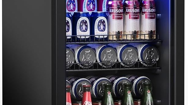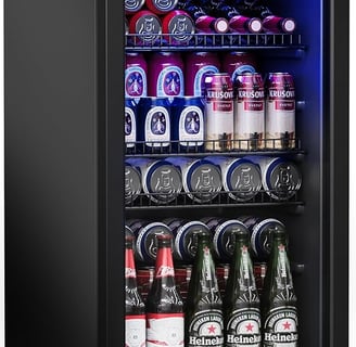 Glass door mini fridges, like the 'Beverage Refrigerator Cooler-120 Cans Freestanding Mini Fridge Cooler with Glass,' are another prevalent type. These mini fridges are designed to showcase their contents, making them a perfect fit for portraying an aesthetic appeal in a kitchen or a game room. The transparent doors allow for quick visibility of your beverage collection, while the built-in LED lighting enhances the display. This model can hold up to 120 cans, providing ample storage for entertaining guests or personal use.